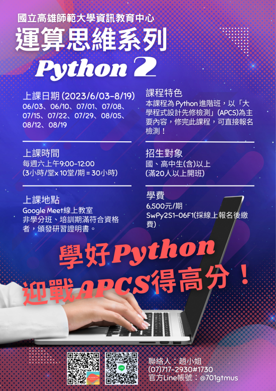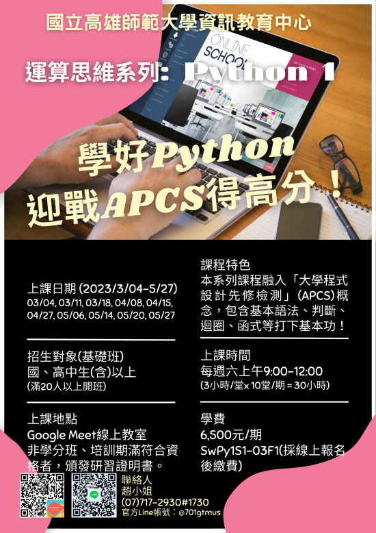 一、課程名稱:運算思維系列: Python 課程【國高中線上班】。
