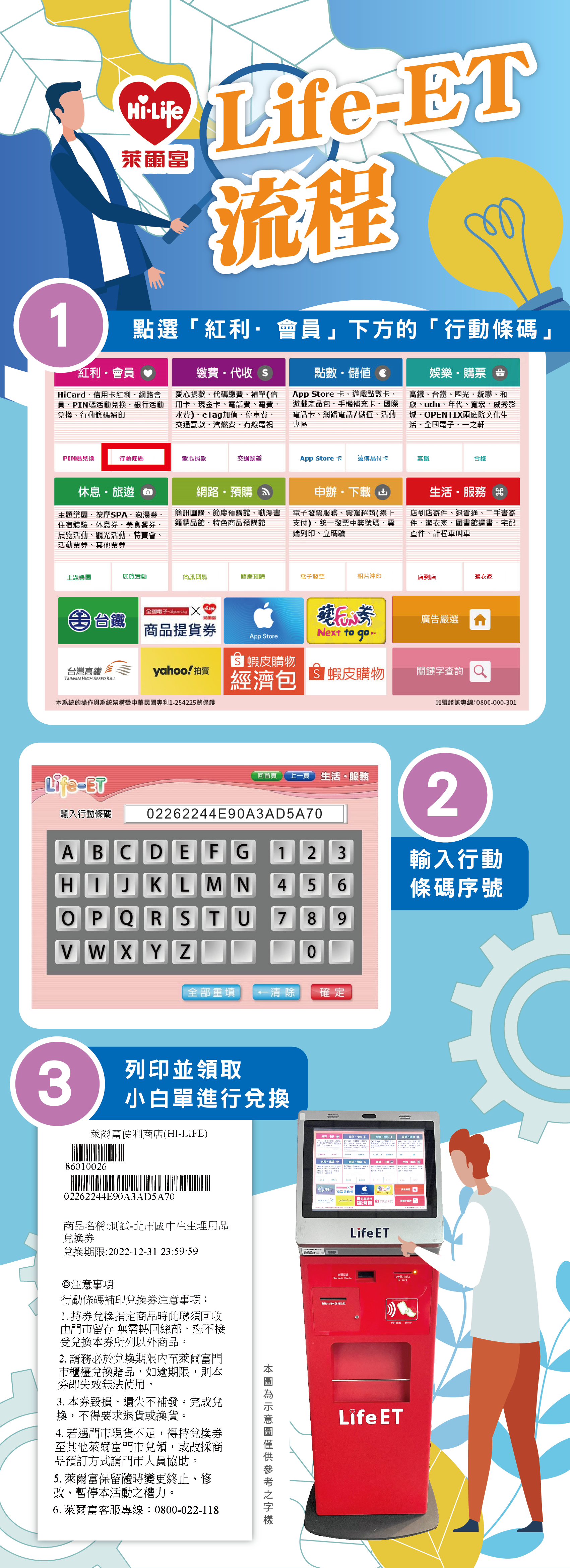 二、112年度1月兌換券效期至112年3月6日止,2月兌換券可兌換至4月6日止,請於期限內踴躍兌換。