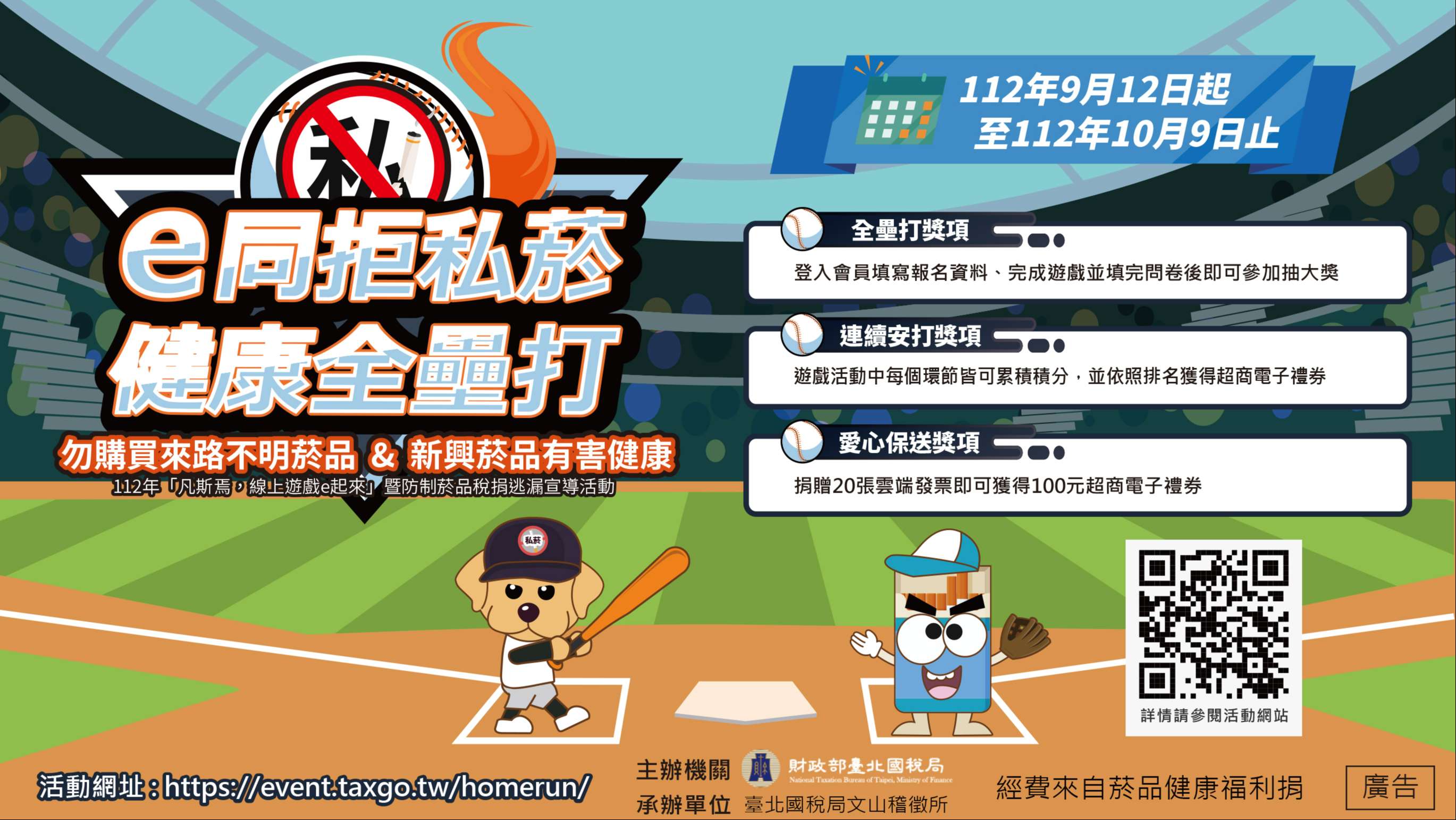 二、旨揭活動時間自112年9月12日起至112年10月9日24時止, 活動網址:https://event.taxgo.tw/homerun/。