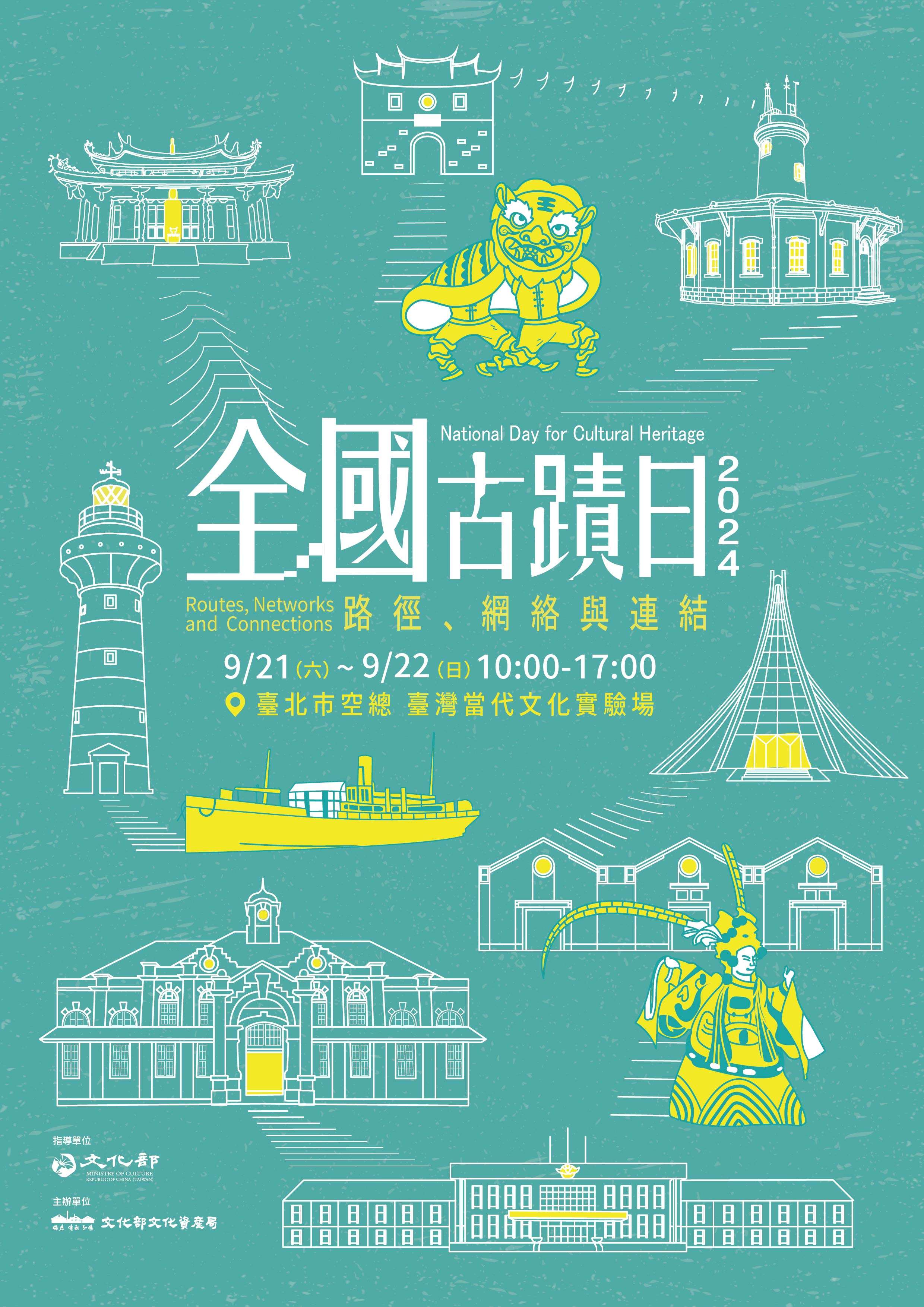 一.文化部文化資產局訂於113年9月21日(星期六)至9月22日 (星期日)辦理「2024全國古蹟日活動」,並為響應2024 年歐洲遺產日,訂定主題為「路徑、網絡與連結」 (Routes, Networks and Connections)
